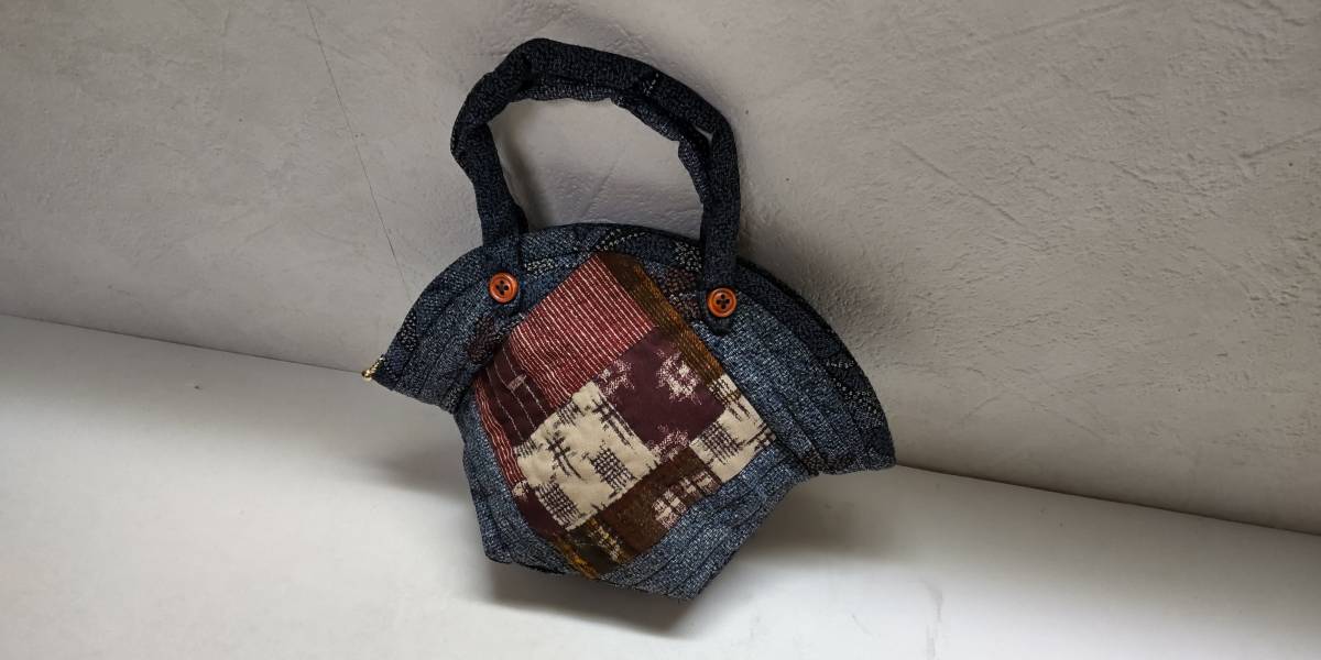 - 「パッチワークキルト ファスナーポーチ ハンドメイド 濃藍色系」未使用【送料無料】「おかあさんのお針箱」00200421
