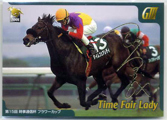 - ★サラブレッドカード2001年上半期版 パラレル 金文字サイン 051 タイムフェアレディ 第15回フラワーカップ 蛯名正義 画像 競馬カード 即決