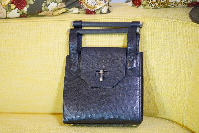 - 本物 フランス製 ミッシェルアドルフ michel adolphe 極上 オーストリッチ鞄 即決 ターンロック金具 黒