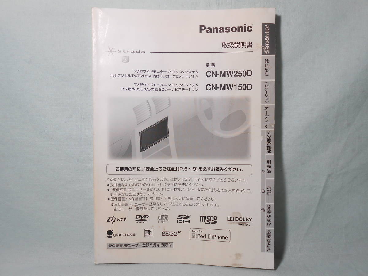 > G-592 ☆ パナソニック 取扱説明書 ☆ Panasonic Strada CN-MW150D/CN-MW250D 中古【送料¥210~】