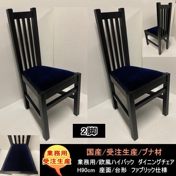 - 送料無料 国産 受注生産 業務用 店舗用 H90cm 欧風ハイバック レトロ調ダイニングチェア 2脚セット 完成品 ブナ材 ネイビー-BK