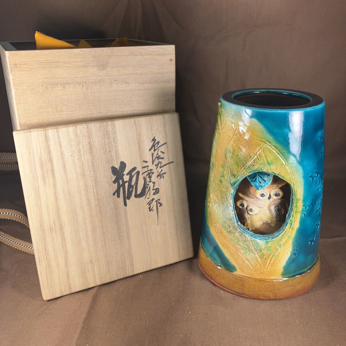 - 美山富造 色絵九谷 二重福郎 瓶 飾り瓶 女流作家 八八八