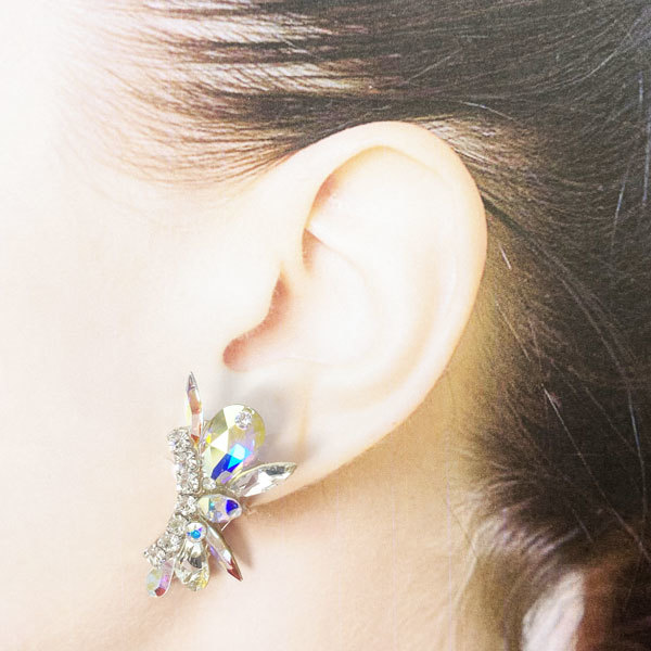 - 送料無料! ラインストーン ドロップ 大振り イヤリング 輝く キラキラ オーロラ クリア ウェディング パーティー 発表会 社交ダンス