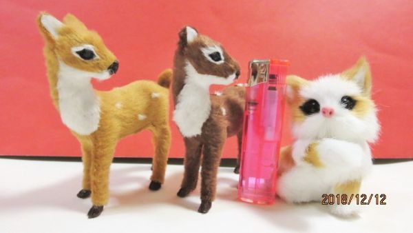 - 済み) リアルな毛並みでキュートでかわいいバンビ2体&ネコちゃんのミニフィギュア合計3体