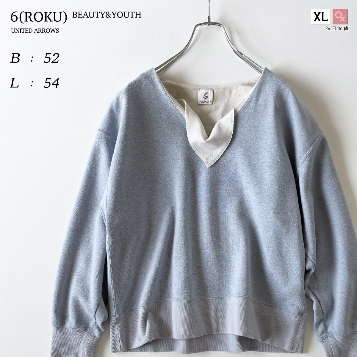 > 6(ROKU) Vネック スウェット 青 ブルー 水色 変形 2WAY オーバーサイズ ロク ビューティアンドユース ユナイテッドアローズ 大きいサイズ