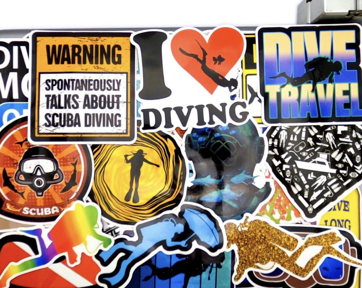 - 60枚セット スキューバダイビングステッカー ステッカーボム 水中 スキューバ ダイビング 海 ステッカー シール スーツケース 雑貨 723