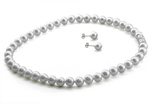 - まつよ (マグネット留め具)花珠貝パールネックレス ピアスセット 42cm 白真珠ホワイトカラー8ミリ42センチピアス 冠婚葬祭 M-W8-42P