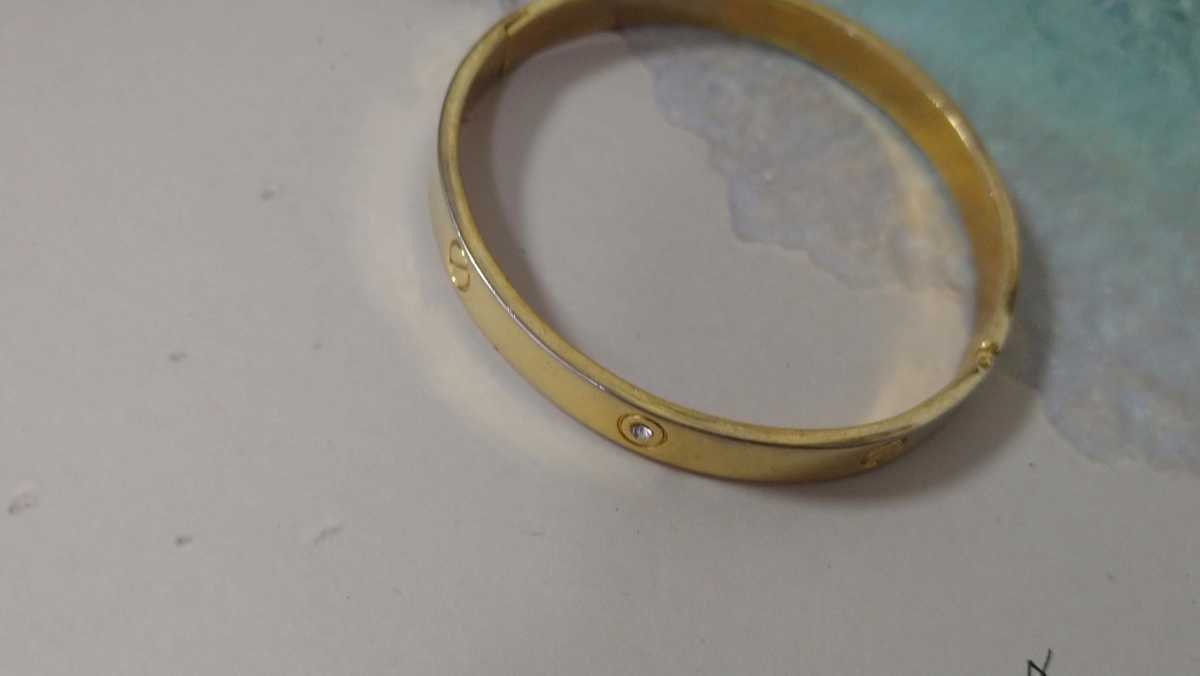- □訳あり□ゴールドカラー×埋め込みラインストーン・バングル□