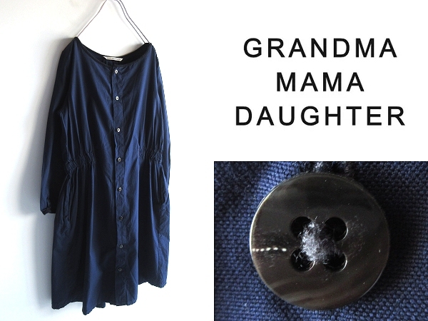 - GRANDMA MAMA DAUGHTER グランマママドーター ウールトリム コットン フロントフルオープン ギャザーワンピース ドレス 羽織 0 紺 ネイビー