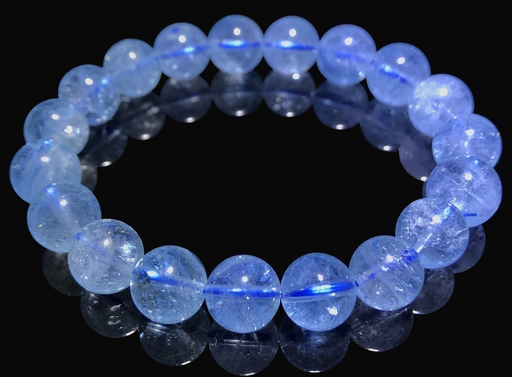 > [EasternStar] 海外発送 アイス アクアマリン Aquamarine 透明感抜群 特選 天使の石 藍玉 玉サイズ6.5mm 腕回り約16cm