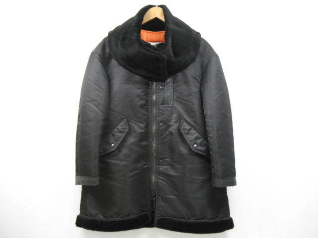 - A エイス 有限会社サマー MA-1 コート ロング ジップアップ ボア 襟取り外し可 黒 ブラック サイズ1