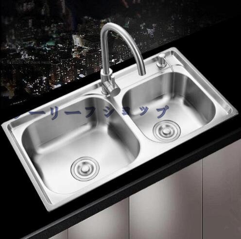 > 【ケーリーフショップ】キッチン用品 ステンレス製流し台 台所 2槽シンク 食器洗いシンク 野菜シンク 肥厚大容量 便利 セット内容多い