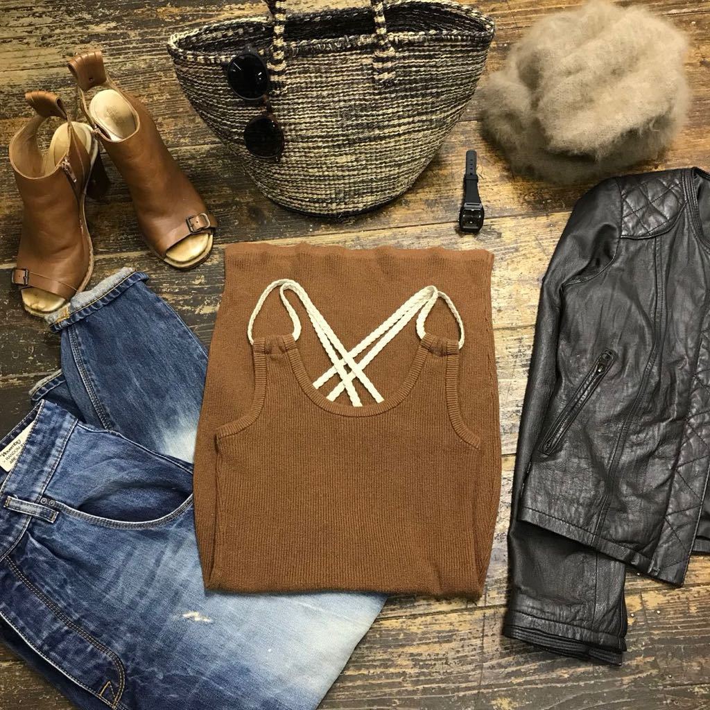 - *リネンデザインニットタンクトップ* デザインキャミ/ノースリーブ/リネン混ニットトップス/デザイントップス