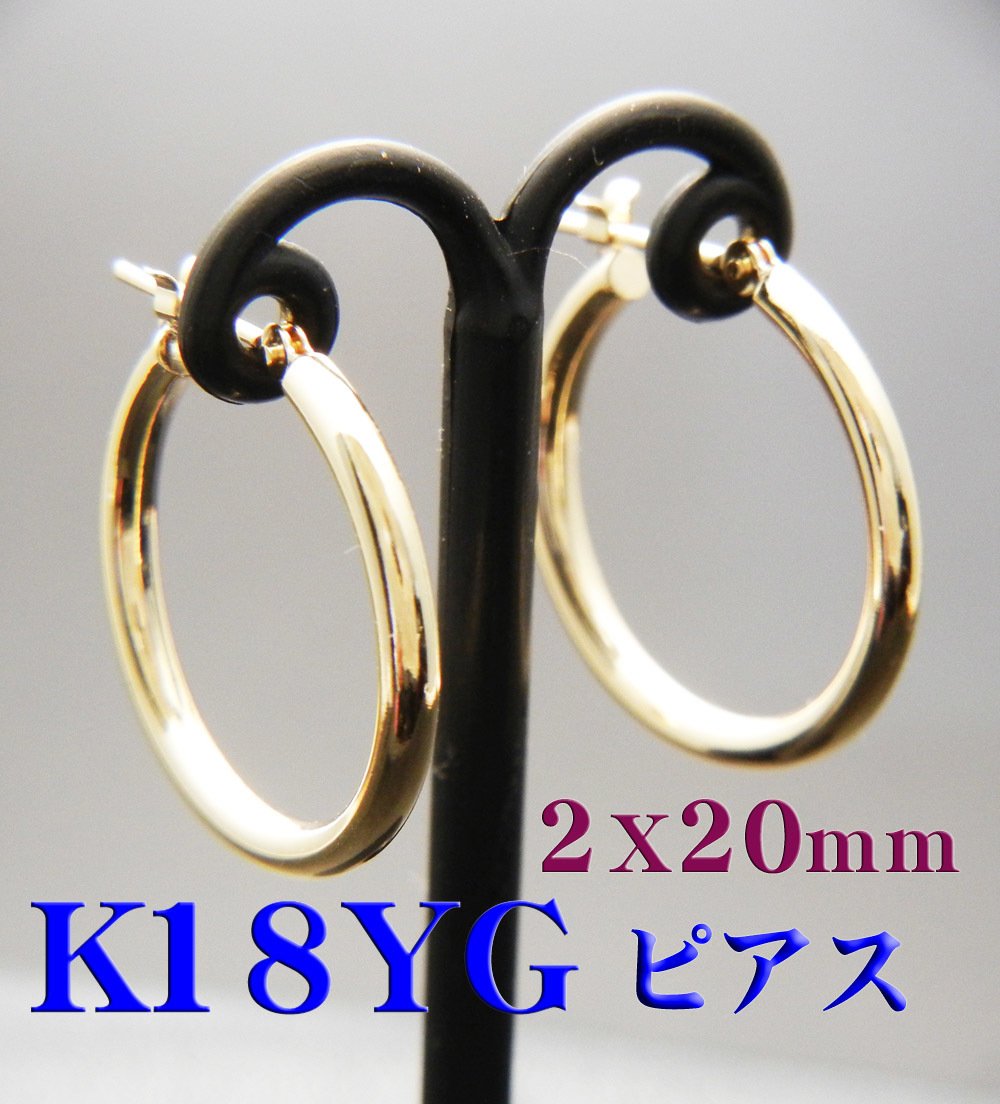 - 特別セール!K18 18金ゴールド 2x20mmフープピアス 新品 日本製 スナップピアス