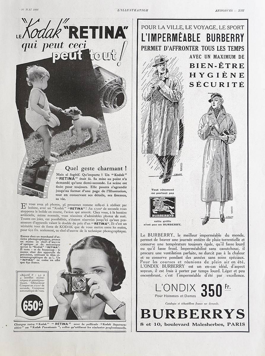 - 稀少!1936年バーバリー広告/Burberrys/コート/ファッション/ブランド/アールデコ/フレンチ/Z