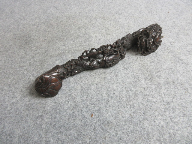 - 【政】32409 古銅彫刻如意 龍文 仏具 読経 僧具 神具 法具 骨董 古物