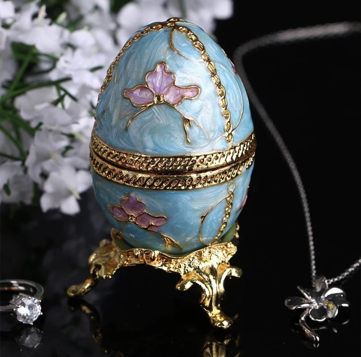 - LHH583★タマゴ型ジュエリーボックス タマゴ 卵 エッグ インテリア オーナメント オブジェ 置物 小物 egg 宝石箱 ジュエリー 宝石 小物入れ
