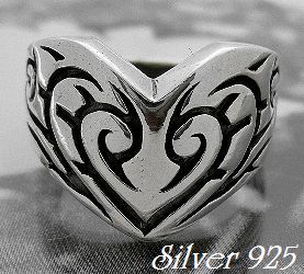 - シルバー925銀のトライバル ハート リング男女兼用/13号.15号.22号.23号より