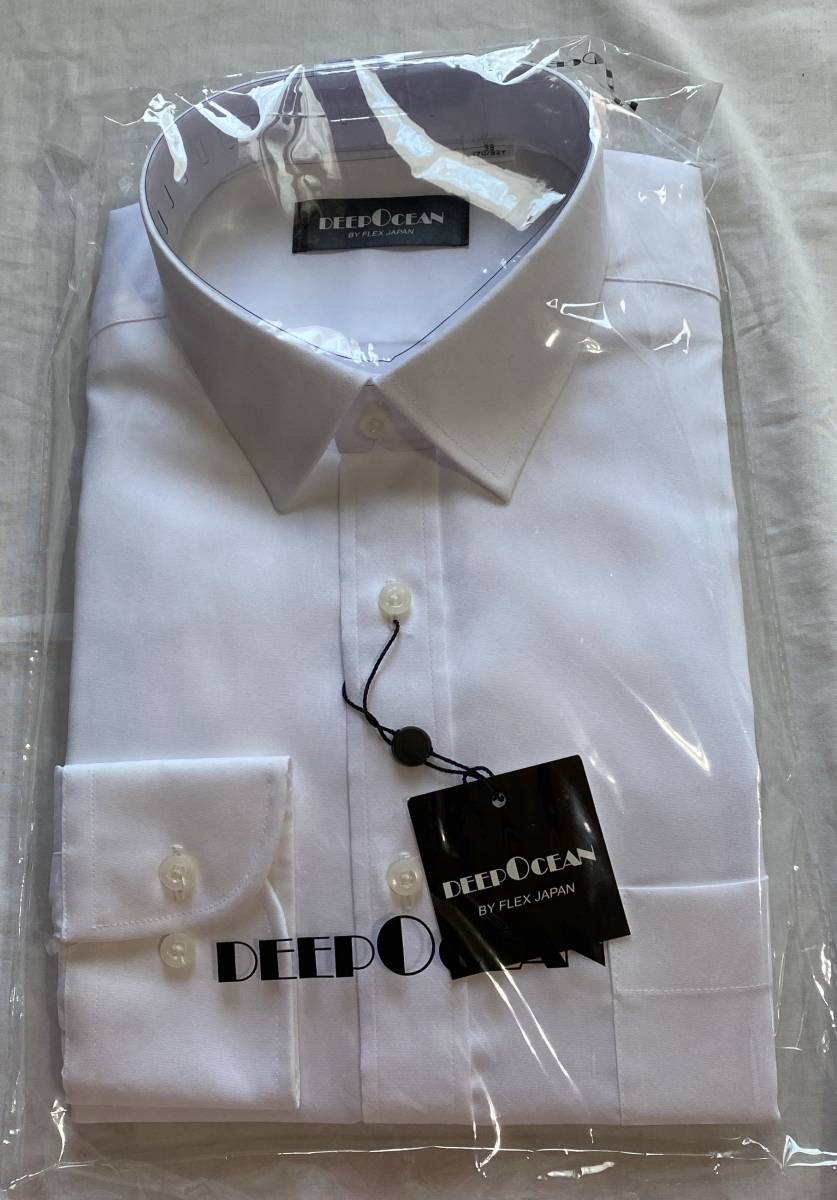 - 高級ワイシャツ Mサイズ 首39-裄丈82 フレックス社製 DEEP OCEAN 白地色●●未使用品