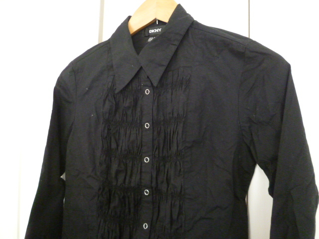 - DKNY/ダナキャランニューヨーク◇黒シャーリングブラウスシャツS/長袖ブラック◇a38