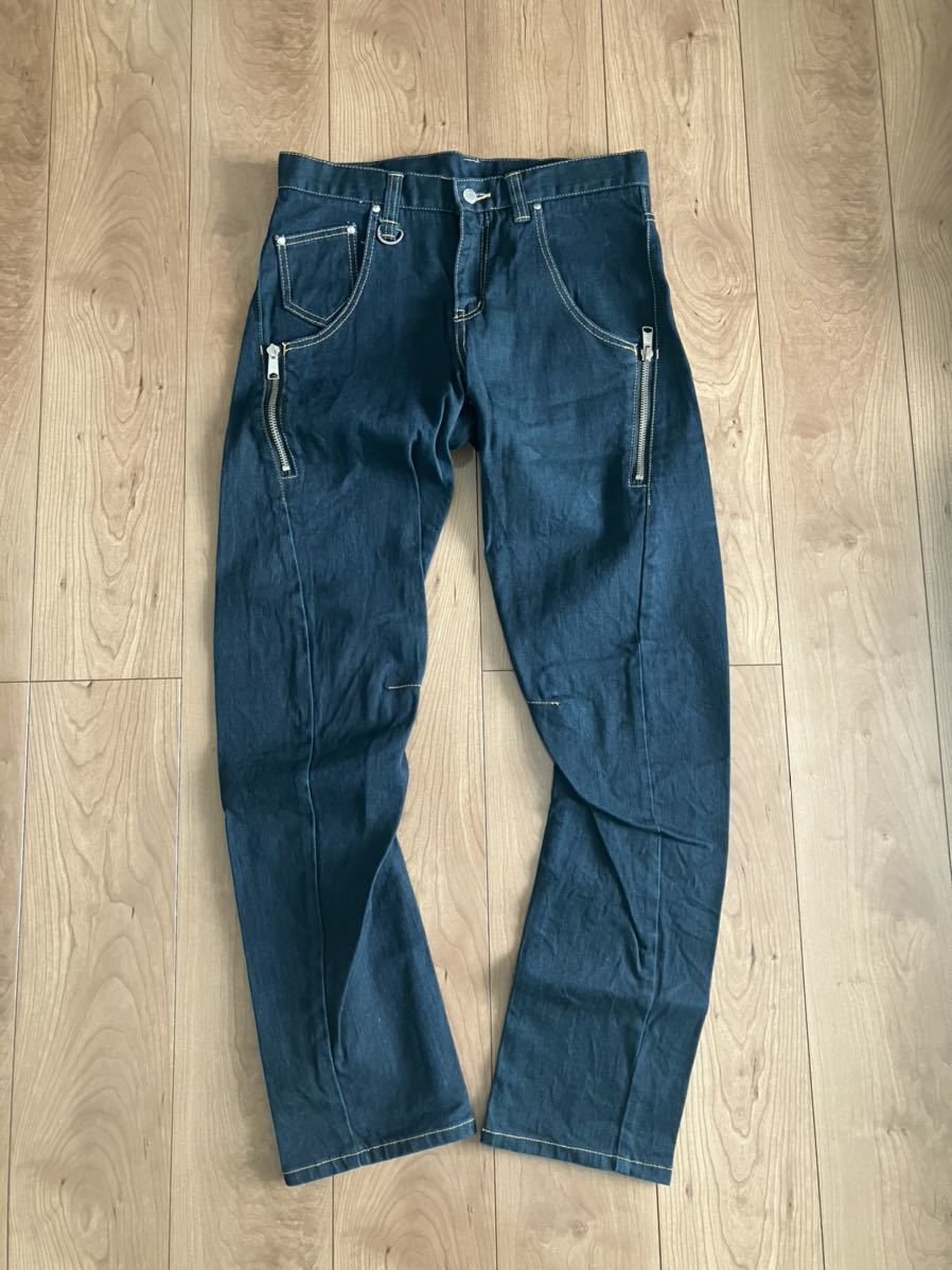 - 美品 メンズ デニムパンツ 長ズボン 変形デザイン ジップ ブルー