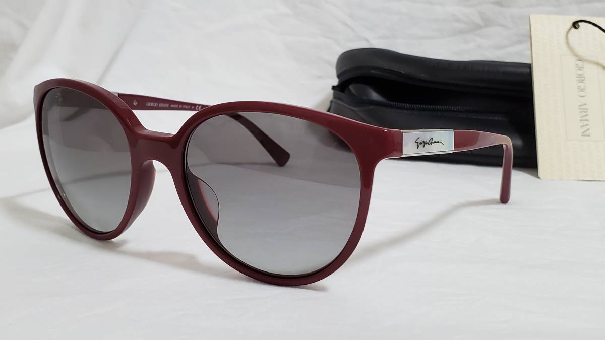 > 正規未 レア GIORGIO ARMANI アルマーニ アイコンロゴ シェルプレート装飾 グラマラスウェリントン ビッグレンズサングラス 赤 黒 付属有