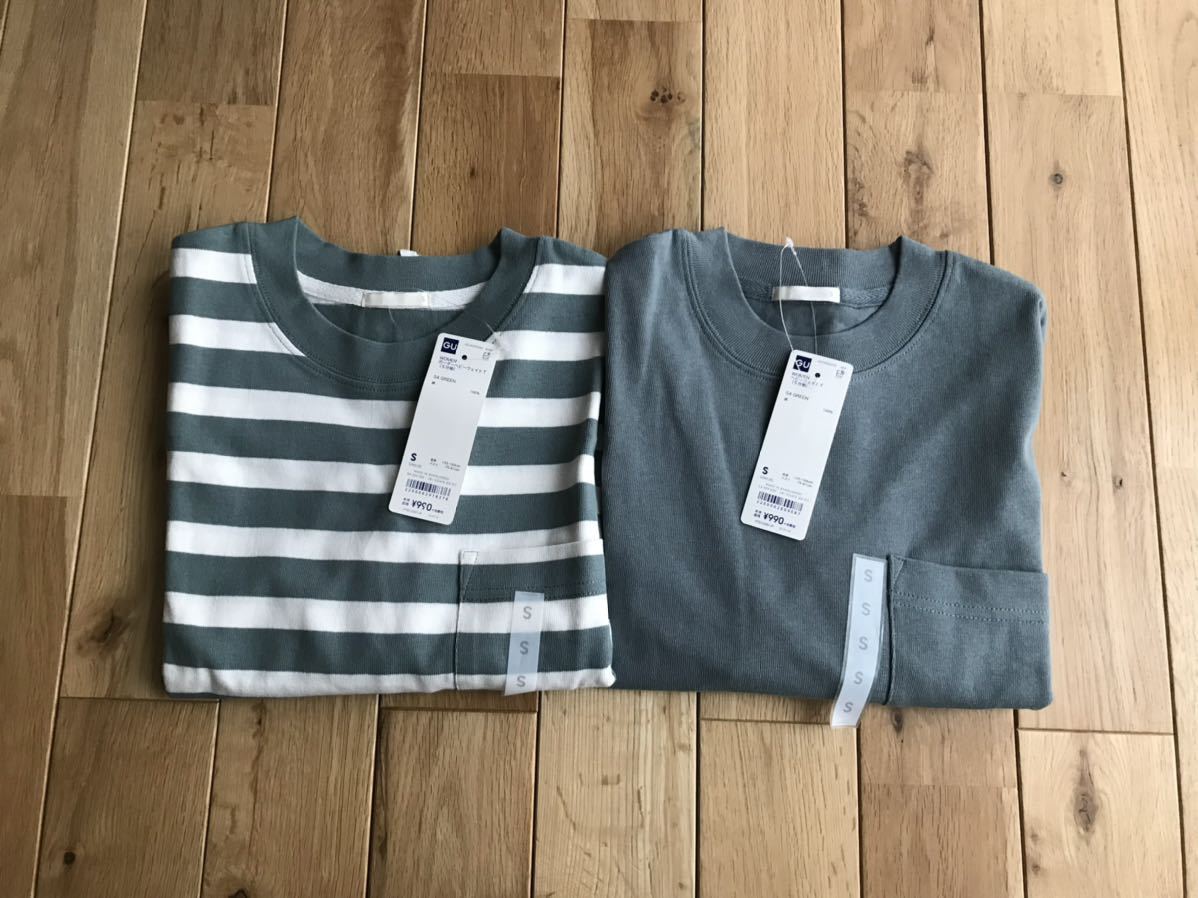 - 新品 GU ヘビーウェイトT 五分袖 Tシャツ グリーン Sサイズ セット