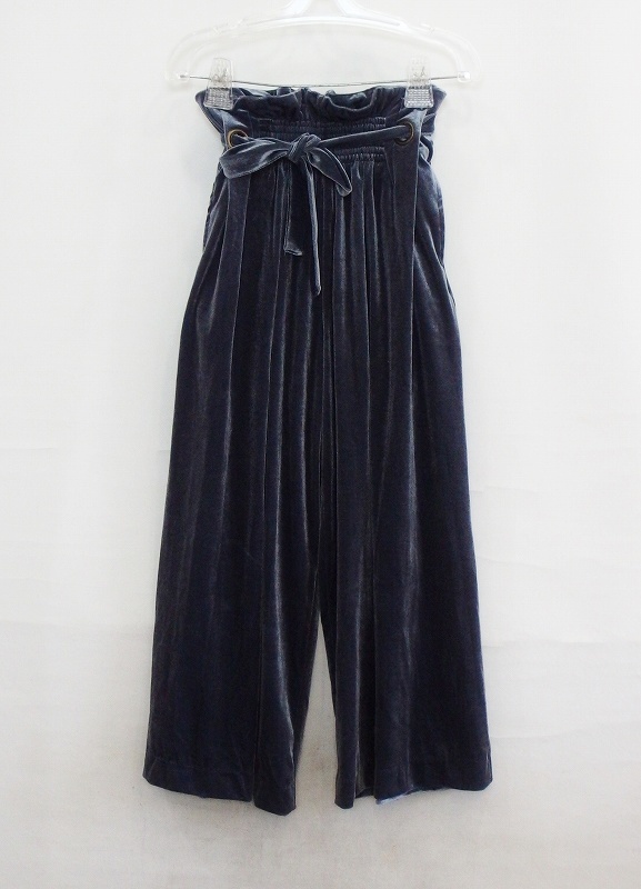 > W*ナイスクラップ NICE CLAUP ベロア調 ハイウエスト ワイドパンツ ベルト F ネイビー系ブルー ok4424199057
