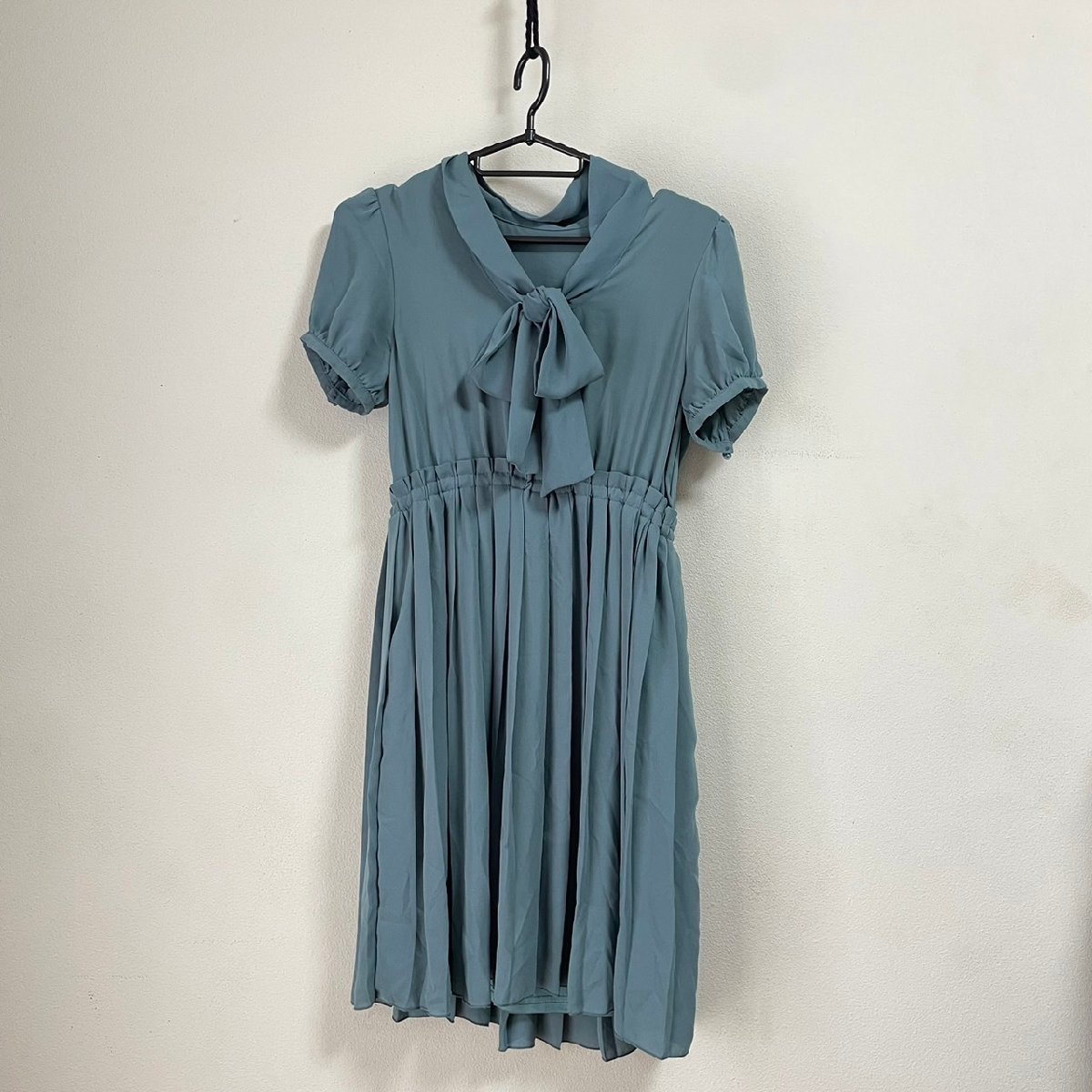 - ワンピース グリーン 半袖 ボウタイ シフォン Jolly Days ジョリーデイズ プリーツ 緑 サイズ38