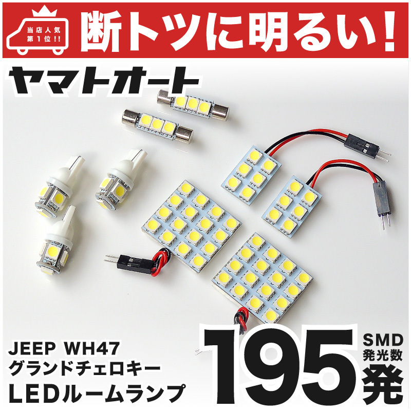 > 【断トツ195発!!】 WH47 ジープ グランドチェロキー JEEP LED ルームランプ 9点 室内灯 パーツ カー用品 車内灯 ライト 内装品