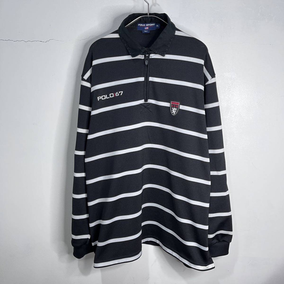 - ☆送料無料☆POLO SPORT☆ボーダー柄ハーフジップラガーシャツ☆黒白☆XL☆ポロスポ