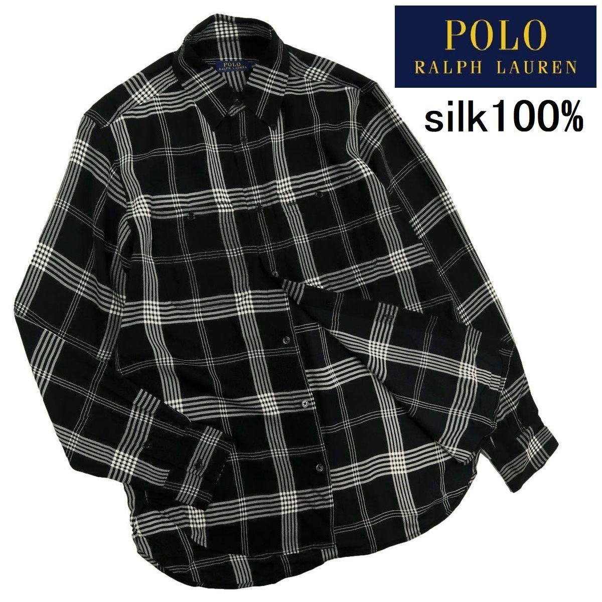 - 【B2189】【新品同様】【シルク100%】POLO RALPH LAUREN ポロラルフローレン 長袖シャツ オンブレシャツ チェック 絹 サイズS