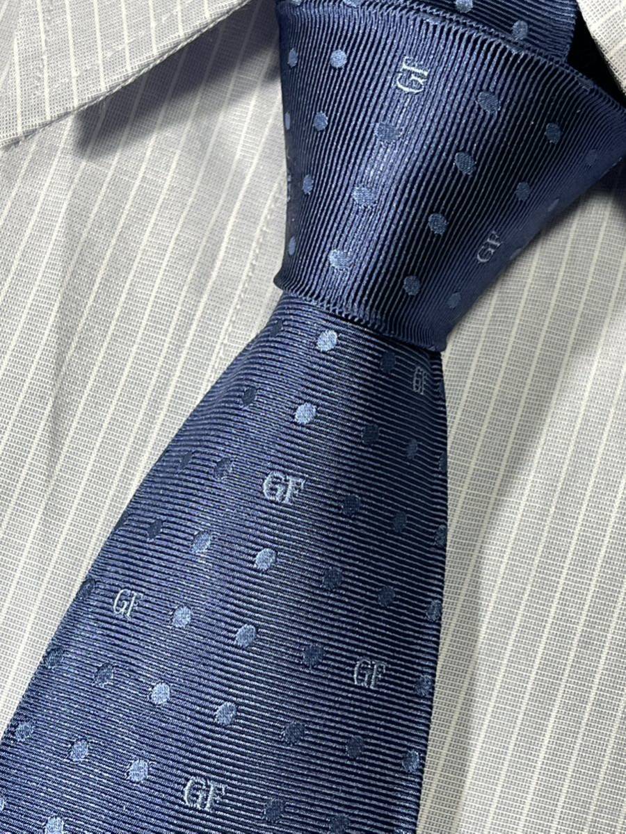 - ほぼ未使用 ″GIANFRANCO FERRE″ ジャンフランコフェレ ドット ロゴ ブランドネクタイ 303280