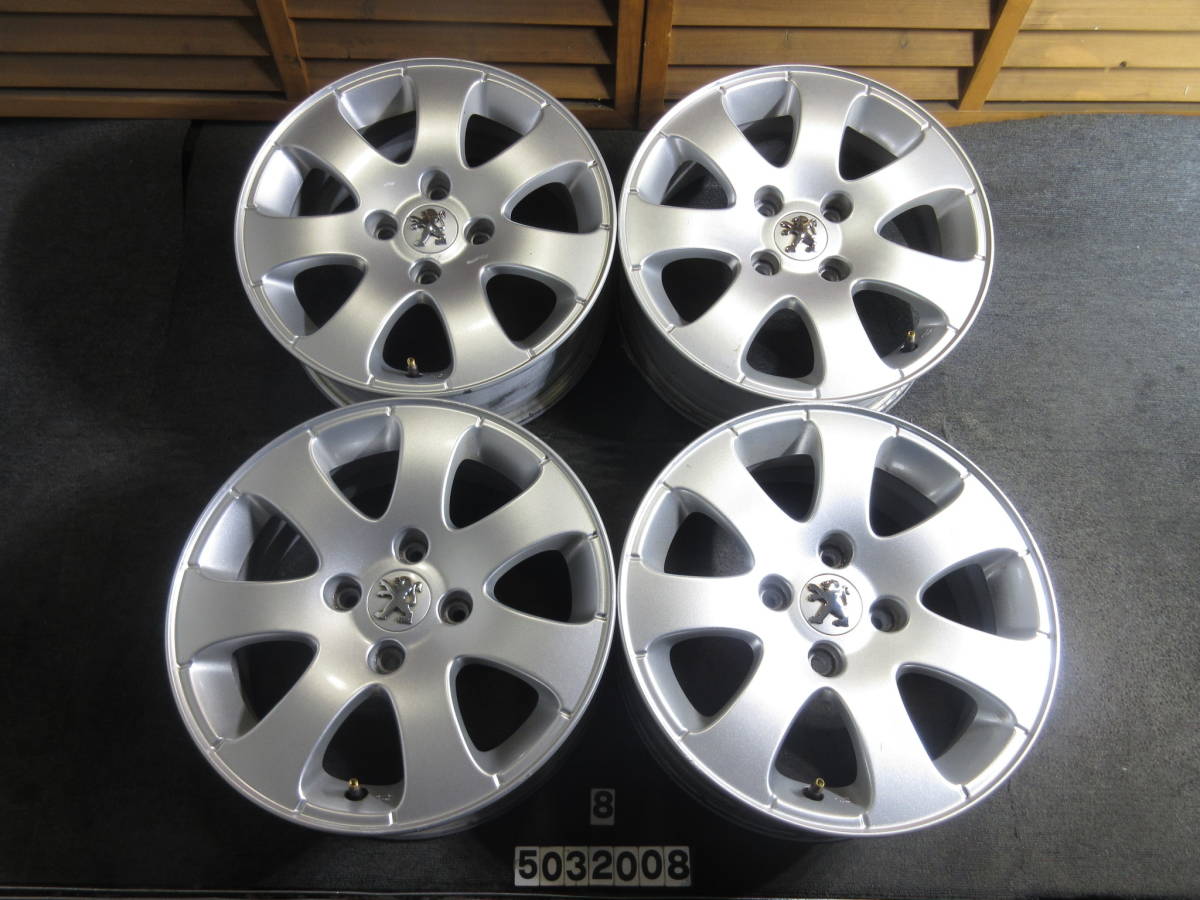 - G1025-1 ②★プジョー 307純正アルミ4本セット★15インチ6J+27 4穴PCD108 ハブ径65mm