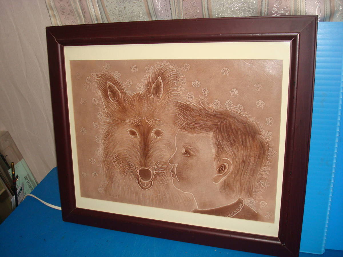 - 「オオカミと少年」レザー型押し画 KUMI 作 PRK30