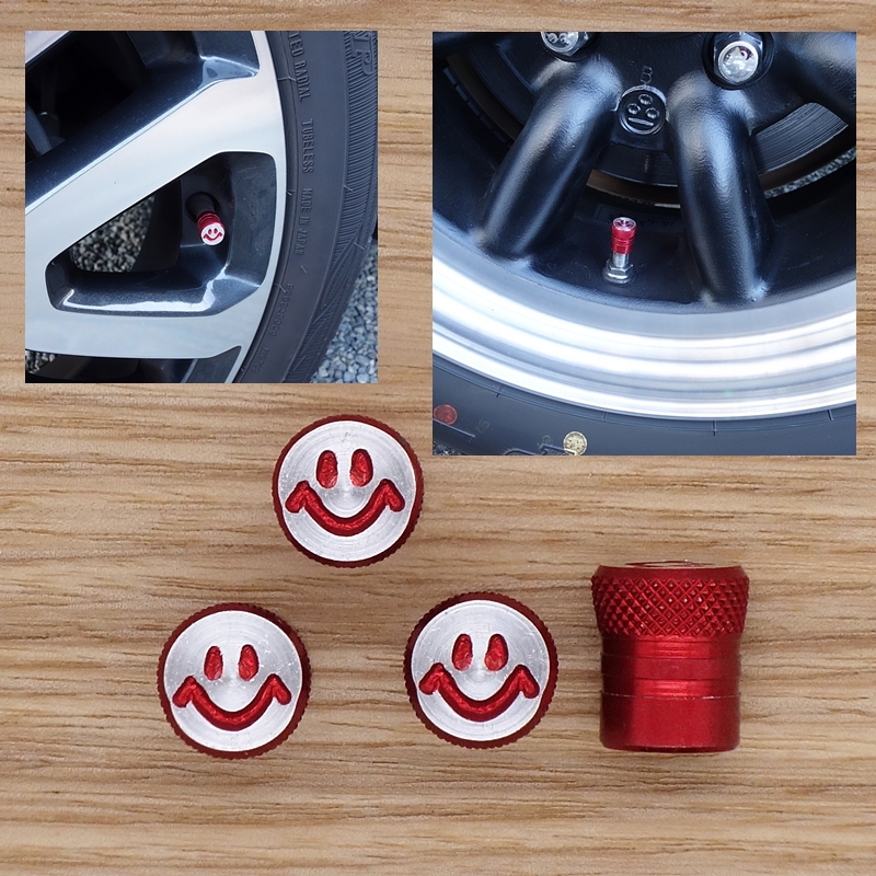 - 【送料無料】エアーキャップ 4個セット レッド スマイル SMILE カスタム 車用 バイク用