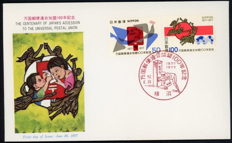 - 0226 【FDC】万国郵便連合加盟100年[横浜/52.6.20/郵政弘済会]