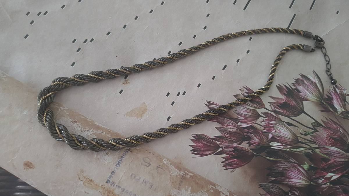- シックな印象 グレーシルバーカラー×ゴールドカラー ツイストデザイン ネックレス