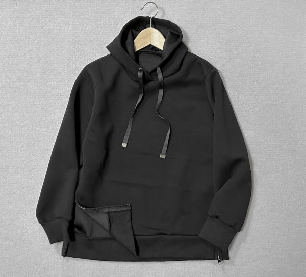 > ★ piacere ピアチェーレ ◆ もっちり肌触り* パーカー プルオーバー フーディー 黒 サイドジップ ◆ W1 ST7とT-32