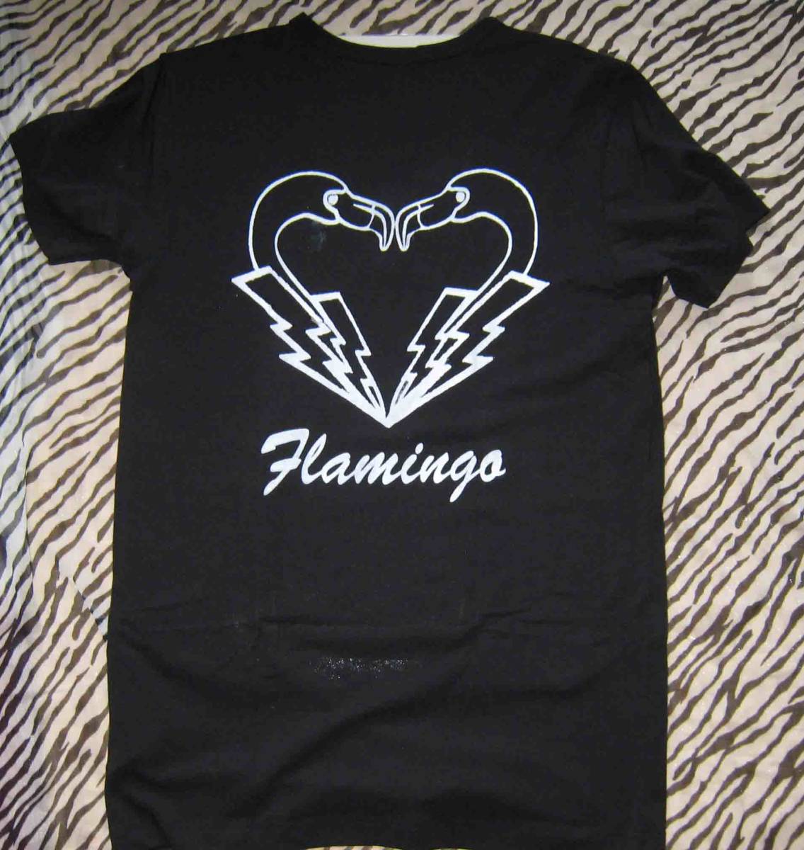 - ハート型のフラミンゴ Tシャツ バックプリント Vネック ■ M・L・2L 3L の4サイズあり