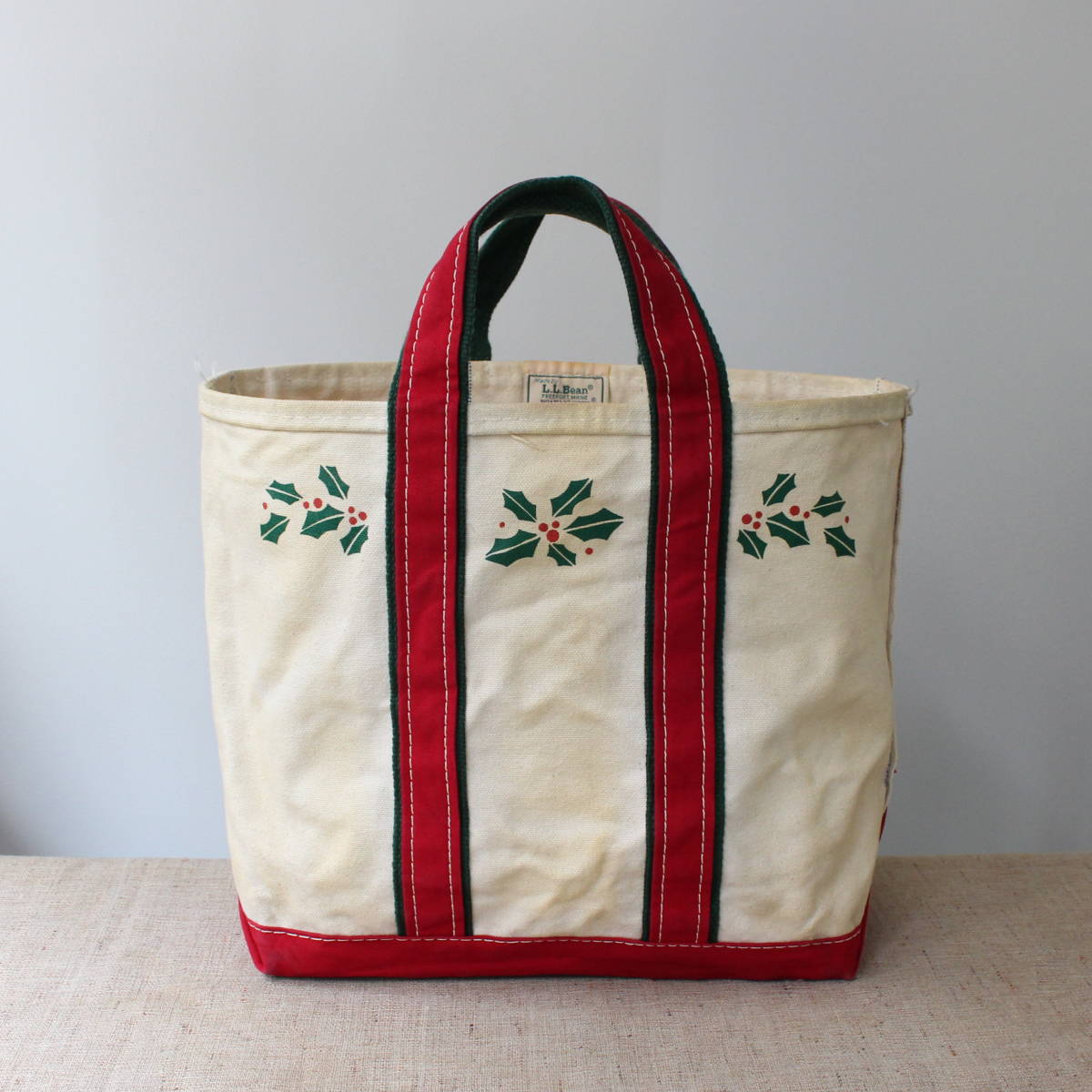 - レア 1980s L.L.Beanヴィンテージ クリスマス柄 キャンバストートバッグ USAアメリカ ツール 小型 Boat and Toteワーク クラフト ビーン 柊