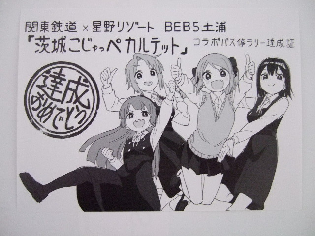 - 達成証 茨城ごじゃっぺカルテット 関東鉄道 星野リゾート 230402 特典 非売品 ポストカード イラストカード イラストペーパー バス停ラリー