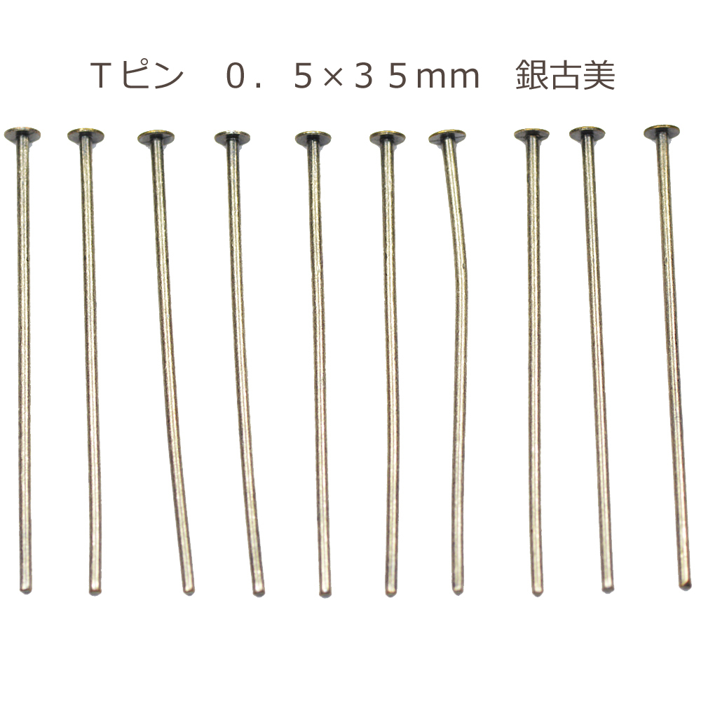 - アクセサリーパーツ 金具 Tピン 0.5×35mm 銀古美 アンティークシルバー 基礎金具