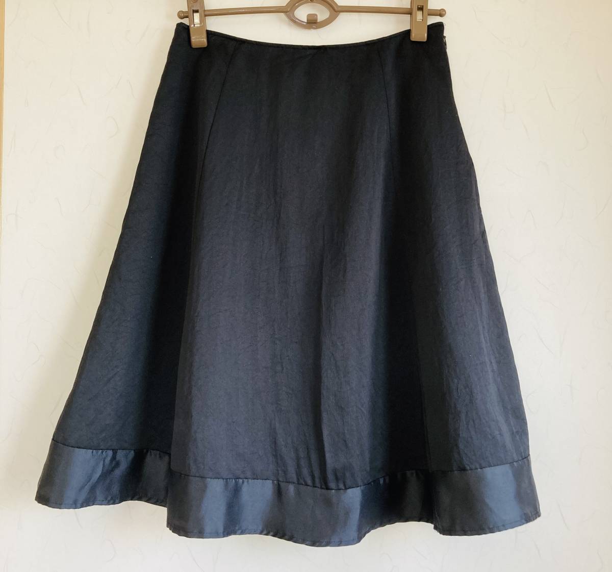 > 【美品】 フレアスカート 黒 ブラック オールシーズン 裏地付き 膝下丈 上品なスカート 横ファスナー ひざ下丈