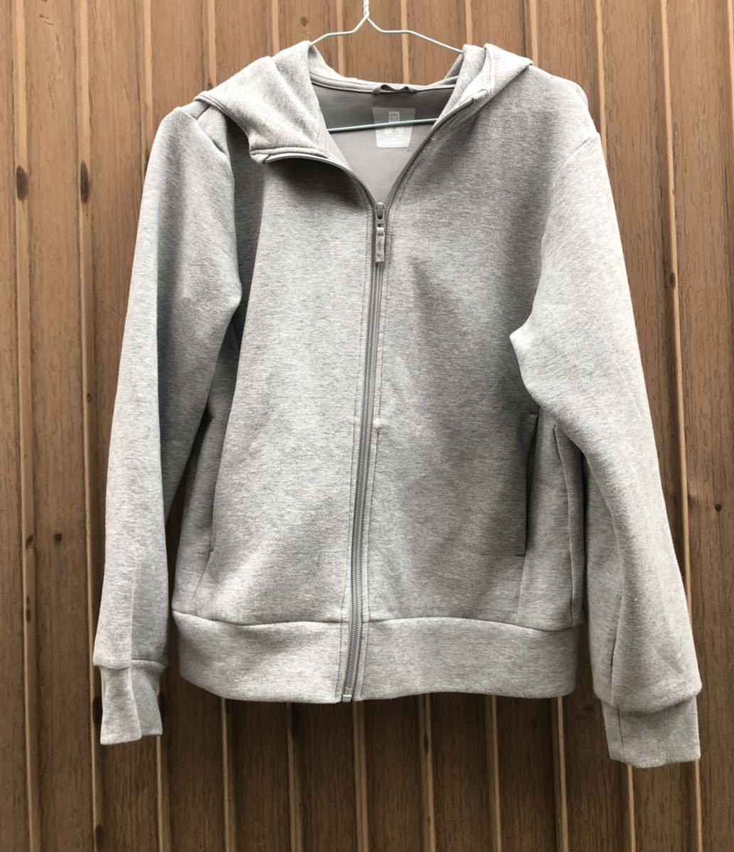 - お勧め・ユニクロ 150 パーカー ねずみ色 フード付きパーカー