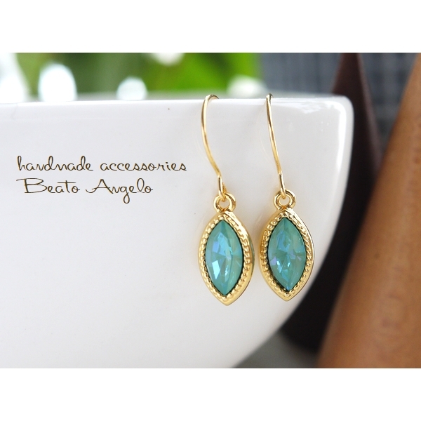 > ◇◇+angelo+スワロフスキー 4228のマーキスピアス(p-029)Cシルキーセージディライト G 一粒 ライトグリーン