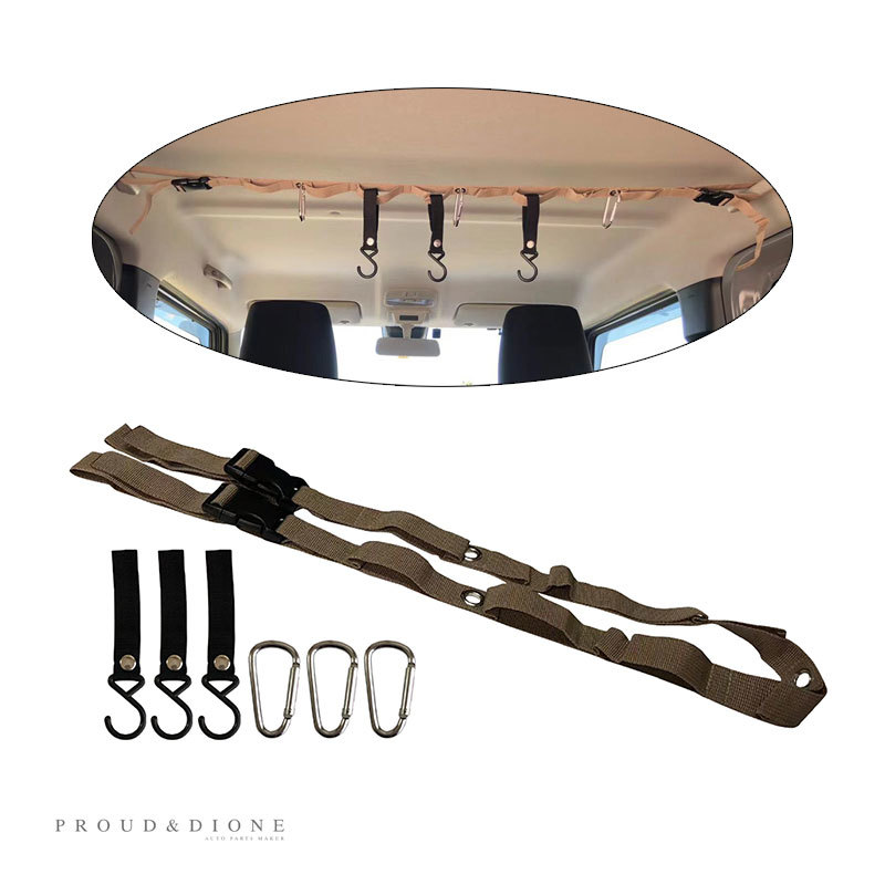 - ハンギングベルトセット カラビナ フック付 丸穴3ヶ所 車内収納 サンドカーキ アウトドア レジャー PROUD GEAR プラウドギア PGR-117