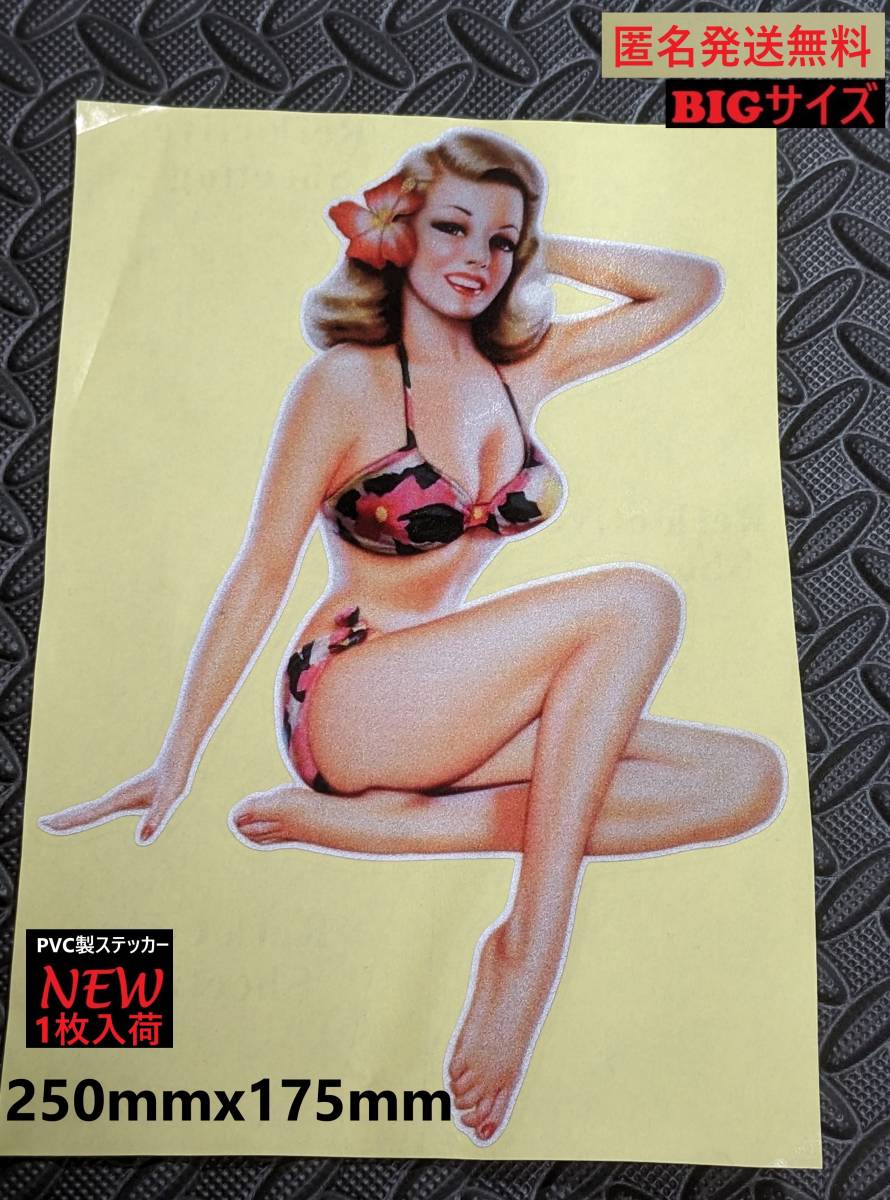 - 【BIG 250㎜x175㎜キラキラ♪ピンナップスマイル】 アート ピンナップガール★セクシーガール★セクシーステッカー★レトロステッカー