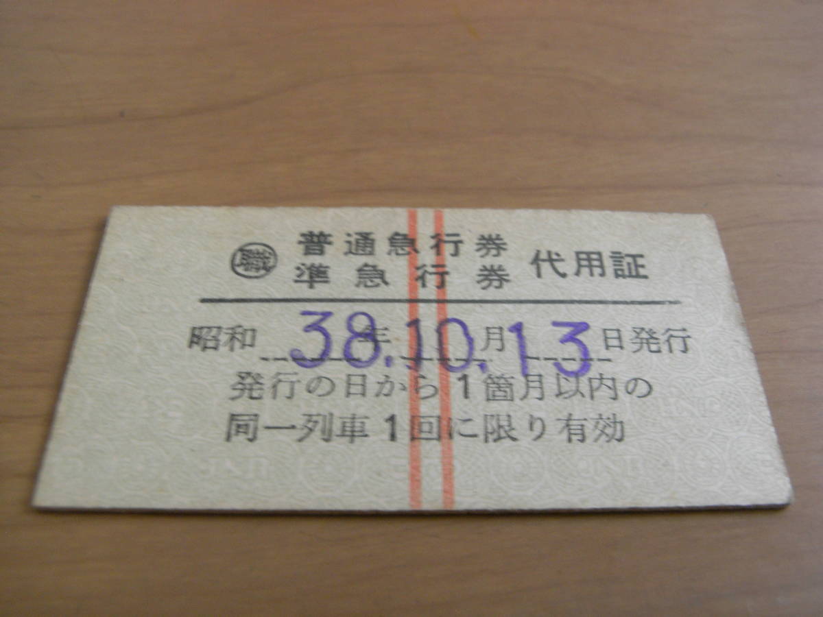 - 職 普通急行券 準急行券 代用証 昭和38年10月13日発行 新鶴見操車場駅長発行