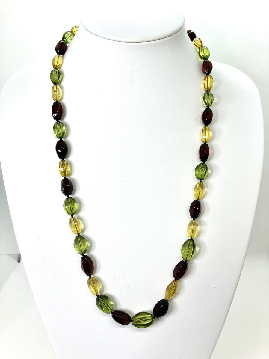 - 【新品】リトアニア産琥珀(こはく)トリプルカラーネックレス*グリーン琥珀*レッド琥珀*イエロー琥珀*マルチカラー*カットデザイン